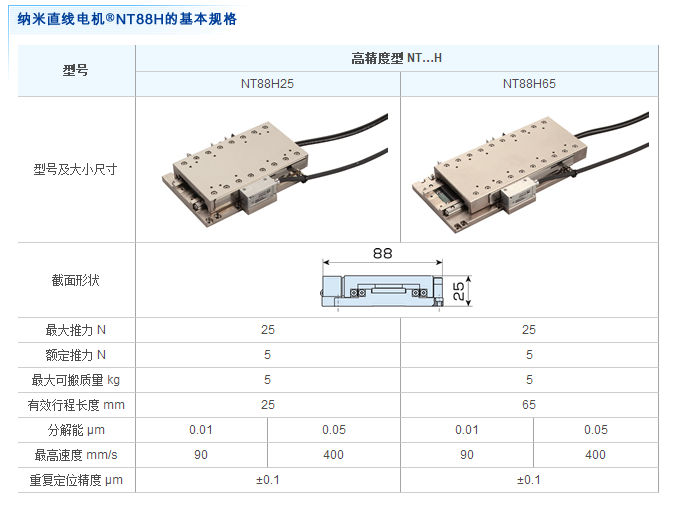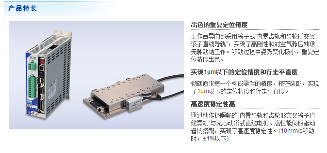 纳米直线电机在钢制工作台部配置磁铁和光学线性编码器用光栅尺,钢制底座上配置定子线圈、线性编码器头等,是一款电磁式直线电机定位工作台。工作台导向部采用在小形直线导轨设备领域赢得口碑的IKO交叉滚子直线导轨,直线电机搭配高分解能线性解码器,取得高精度的定位精度。采用高性能钕磁铁,具备大推力,体型小的同时能实现高速高响应的定位精度。此外,采用划时代的无电缆驱动方式,机械性接触部分仅采用直线导向装置,实现了高清洁度。纳米直线电机最适合用于半导体和液晶制造以及要求清洁环境的检验、电子元器件装配装置等设备的定位机构。