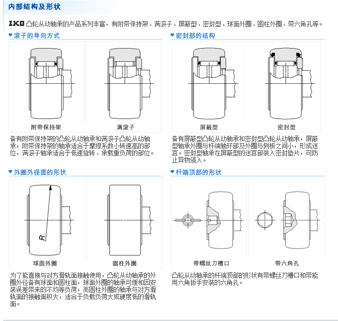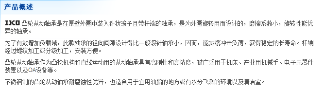 这是装有特殊合成树脂推力垫圈的袖珍凸轮从动轴承,能承载因安装误差等引起的外圈的轴向负荷,具有防止滑动面磨损和磨擦的作用。